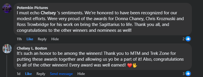 Glad so many are reaffirming all of our support of the TrekZone awards!